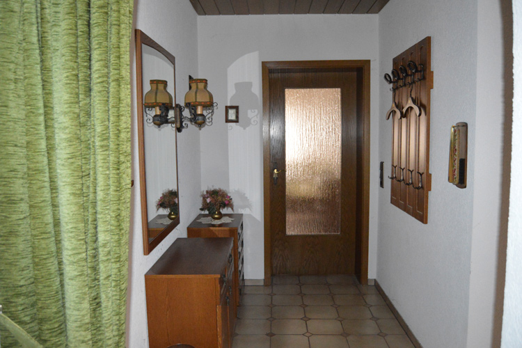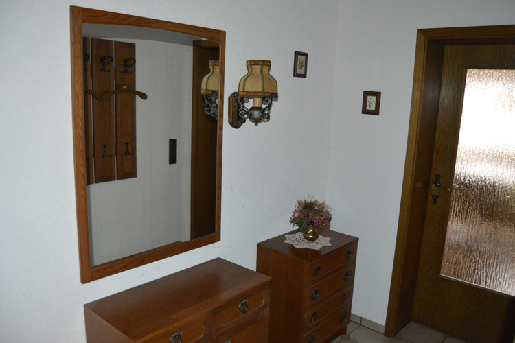 Der helle  Eingang / Flur  hat eine Fläche von 10,8 qm. Von hier aus gelangen Sie ins Bad, Schlafzimmer und Wohnzimmer. Neben einer Garderobe steht Ihnen ein großer Spiegel zur Verfügung.