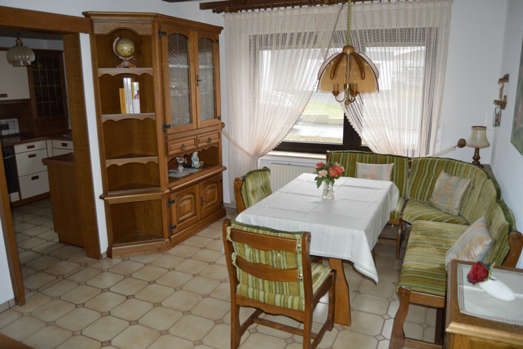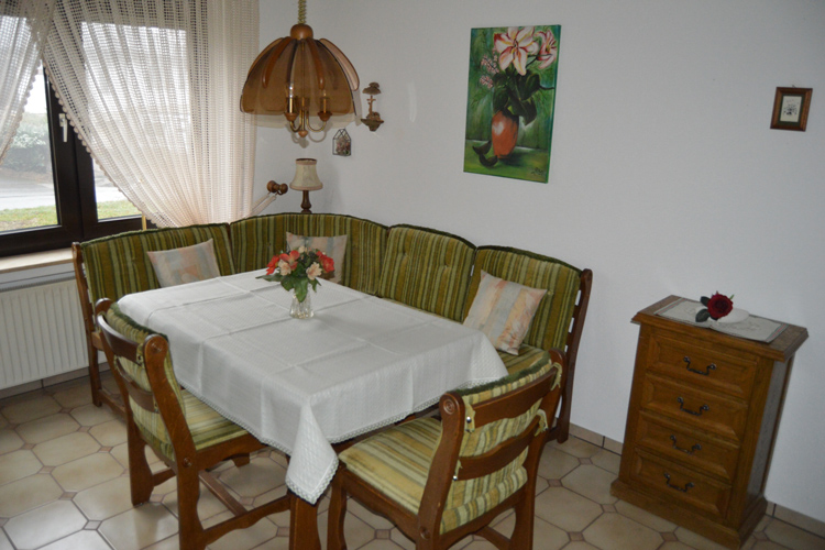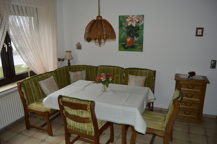 Das gemütliche Esszimmer mit einer Sitzgruppe bestehend aus einem Tisch, zwei Stühlen und Eckbank hat eine eine Fläche von 13,8 qm, Ein großes Fenster läßt Sie die Sonne bereits beim Frühstück geniessen.