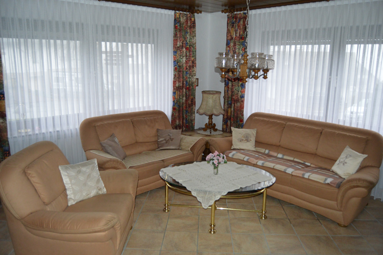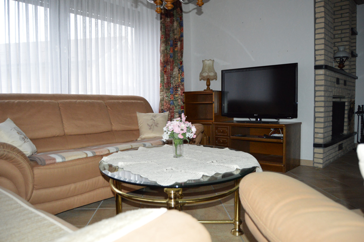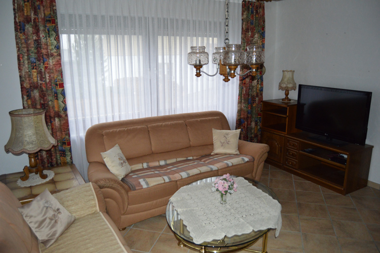 Mit 25,8 qm ist das Wohnzimmer der größte Raum der Wohnung. Das Zimmer wird durch zwei Fenster sonnendurchflutet. Es gibt zwei gemütliche Sitzecken, Ein Fernseher mit Sat-Empfang ist ebenfalls vorhanden.
