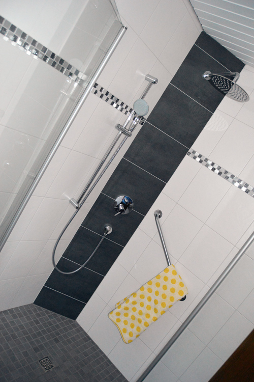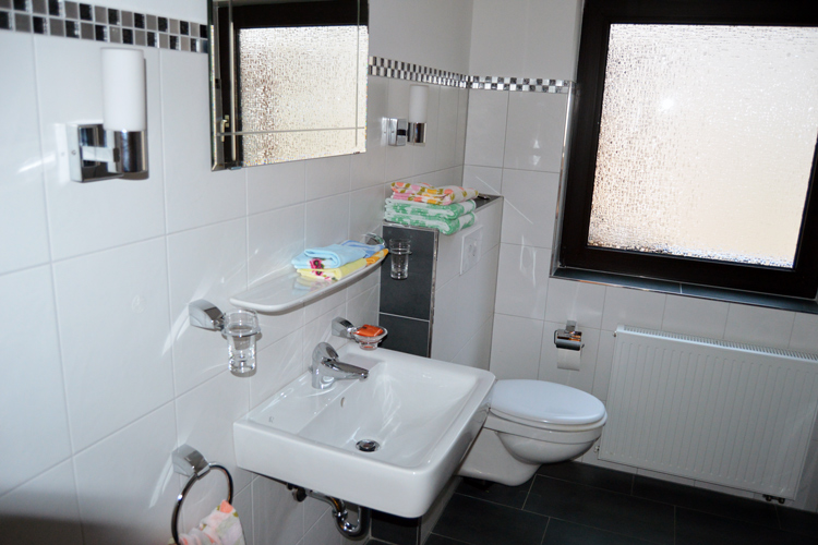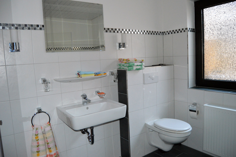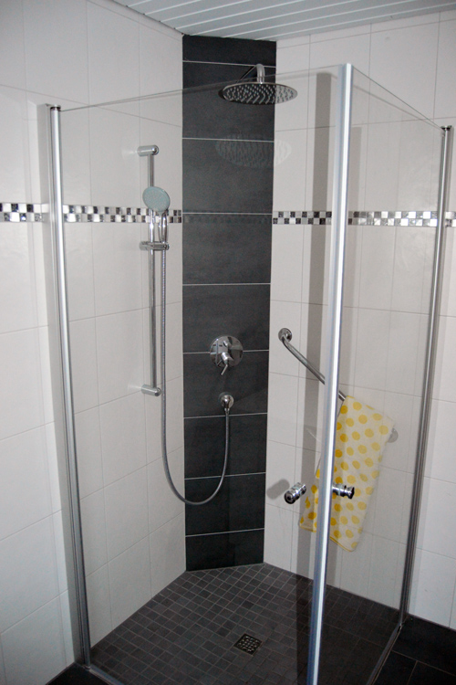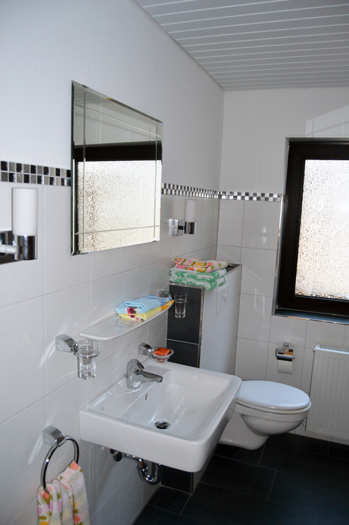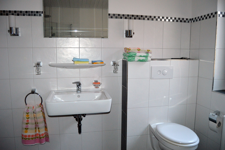 Das helle Badezimmer mit Tageslichtfenster hat eine Fläche von 6,1 qm und wurde kürzlich renoviert. Sie finden hier eine ebenerdig begehbare Dusche. Auch eine Waschmaschine steht zur Verfügung.